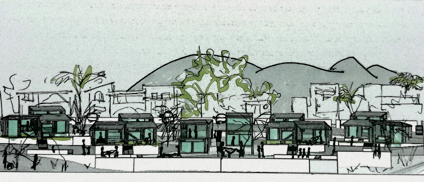 Objective of this project: To build 10 apartments with a common space taking into consideration its location and climate. The common space is to be used by both the public and residents.