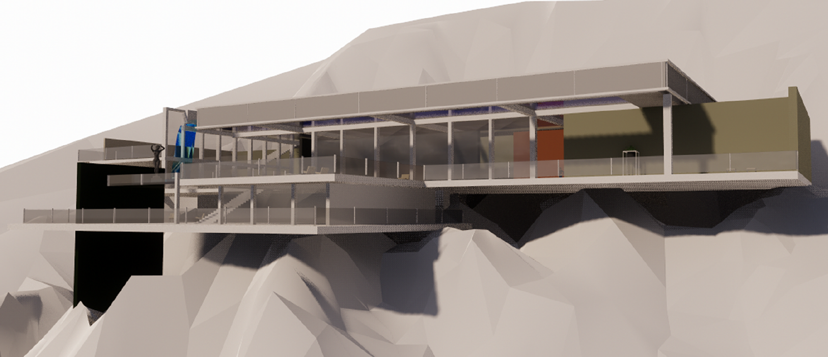 The famous sculpture was also visible from every room. Different floors that follow the topography were also created.