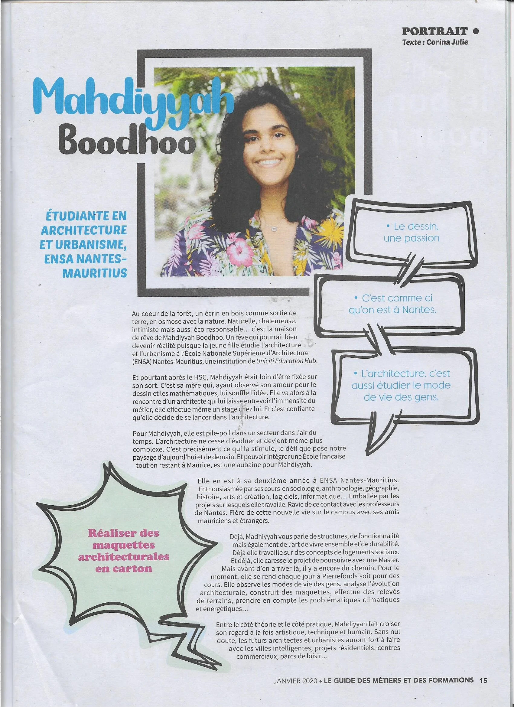 Selected by ENSA Mauritius to represent itself in an article in the Press (Métier Formation).