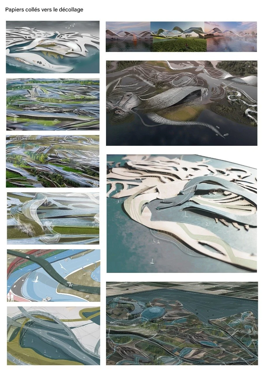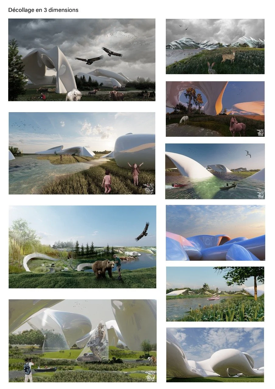 Notre projet regroupe nos intentions et nos recherches sur un urbanisme et une architecture novatrice. L'exercice reste tout de même hautement expérimental et fictionnel mais ouvre la porte pour un changement dans la façon habituelle d’approcher l'architecture, afin de répondre au plus vite aux changements climatiques.