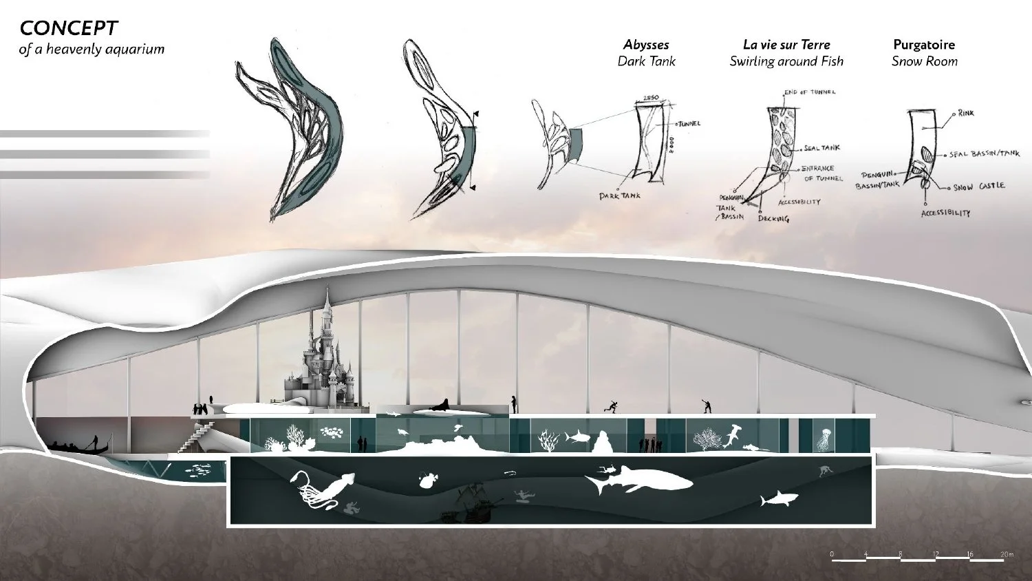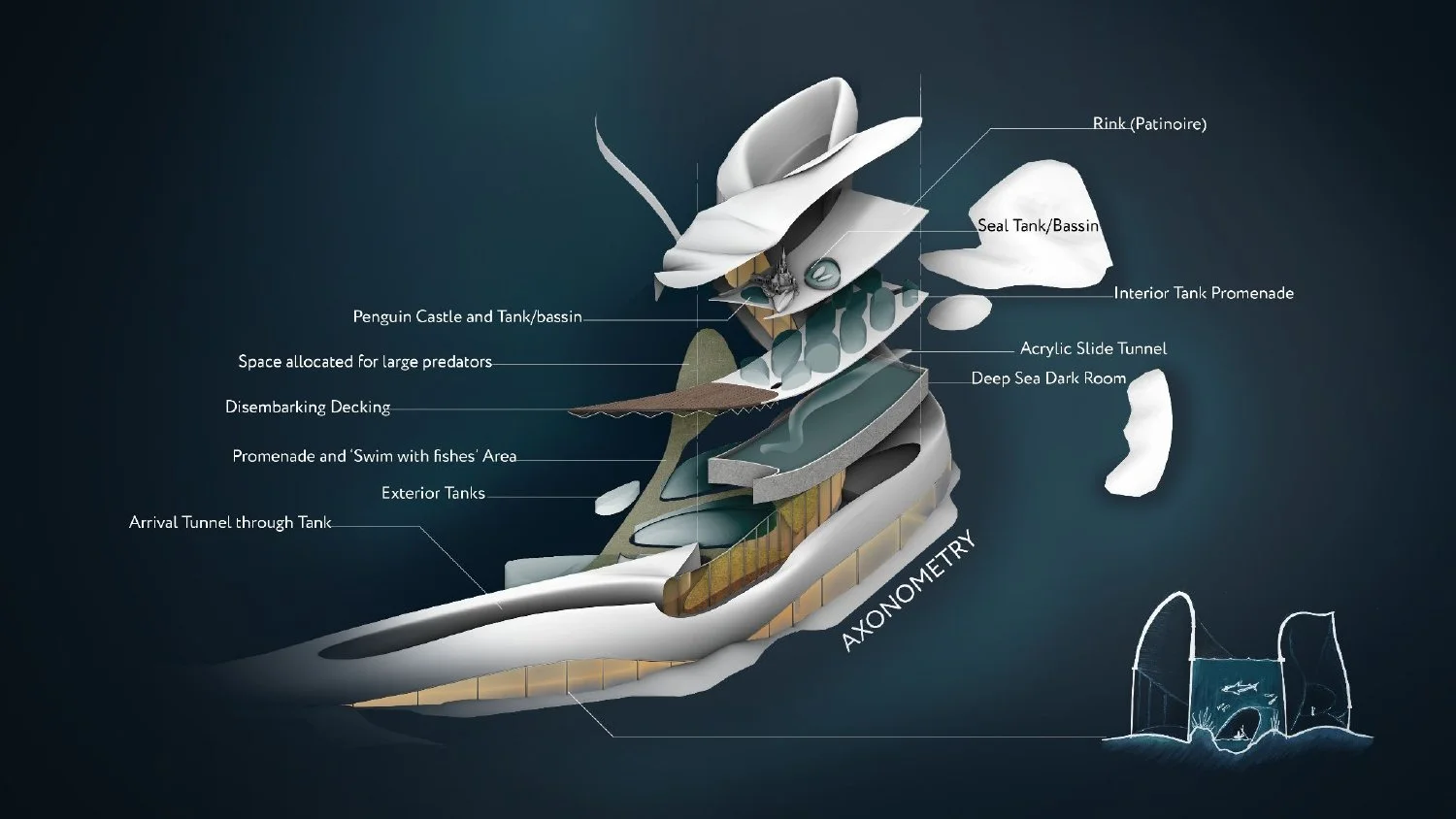 Le programme se divise en quatre parties majeures : le port, le musée, l'Océanorium et les logements.