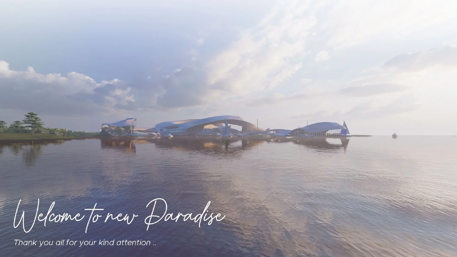 Cette partie englobe la réception, les bureaux et des centres commerciaux, des hébergements, entre autres et sert également de centre administratif de la ville. Une zone de réception gère l'arrivée des visiteurs à New Paradise et permet un accès fluide aux aménagements.