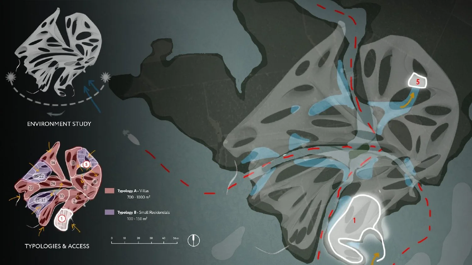 Les changements climatiques constituent la réponse de la nature face aux exploitations peu écologiques de l’homme : cela oblige à imaginer une réponse architecturale éco-responsable. Ces changements mettent au défi nos façons de concevoir le bâti, de réorganiser nos villes et nos vies. À travers ce projet, nous explorons donc de nouvelles alternatives à l'urbanisme traditionnel et à l’architecture irréponsable.
